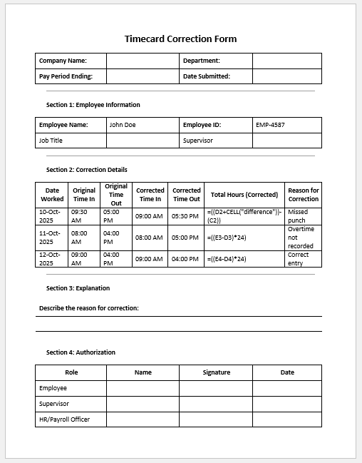 Below are given commonly required Payroll Correction Forms -professionally designed and ready to use. All the forms are available in MS Word format for free download to help the payroll management in any office.