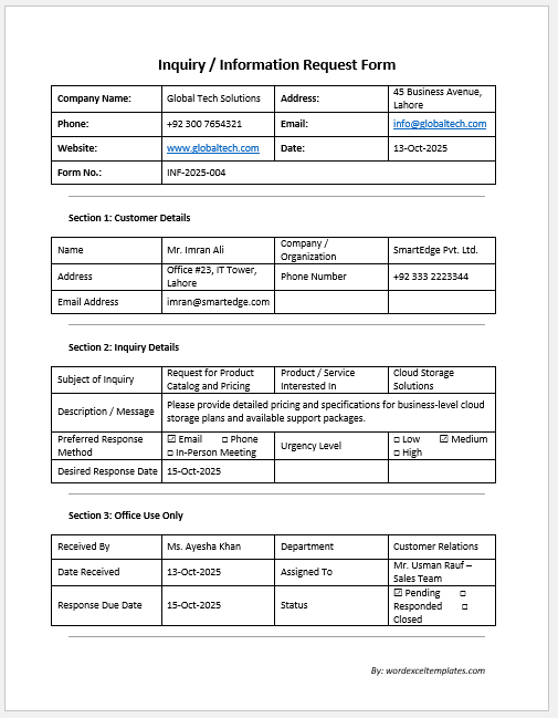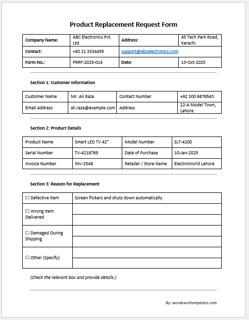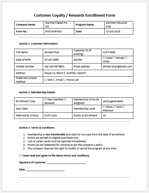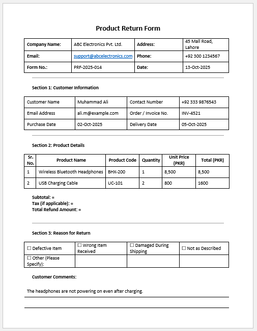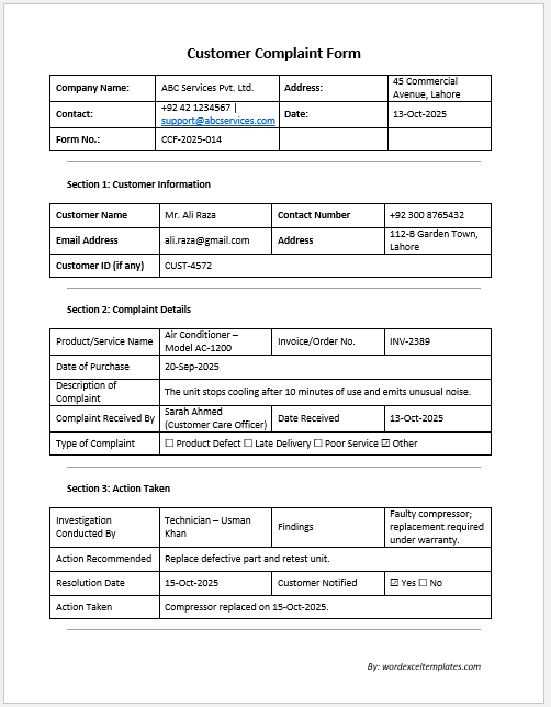 - Customer Complaint Form -records issues faced by customers for quick resolutions and quality control.