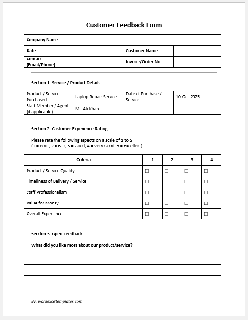 - Customer Feedback Form -collects opinions and experiences to improve products and services.