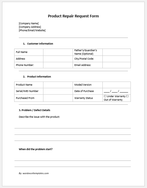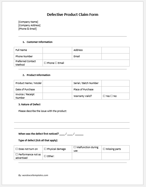 The defective product claim form allows customers to request a replacement or have the product repaired free of charge. In today’s competitive market, this form is an important and convenient service for customers.