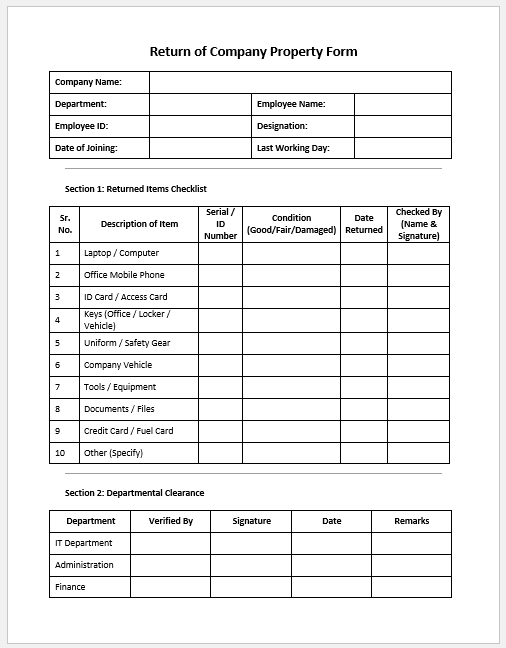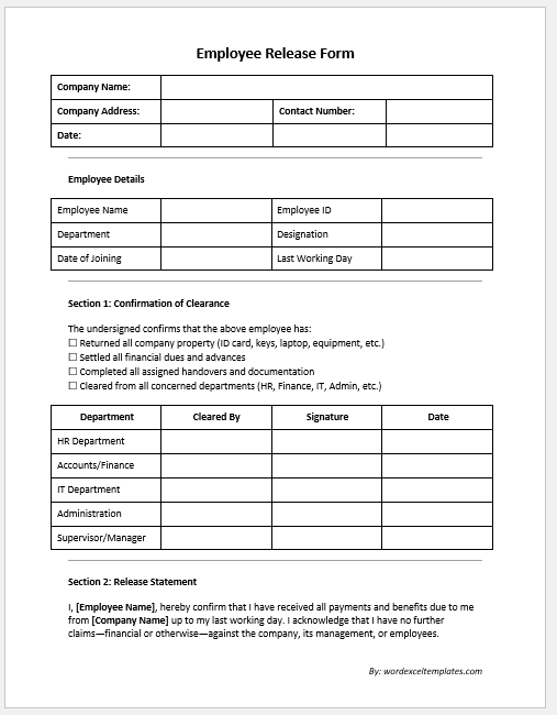 - Employee Clearance Form -confirms all internal approvals and department clearance.