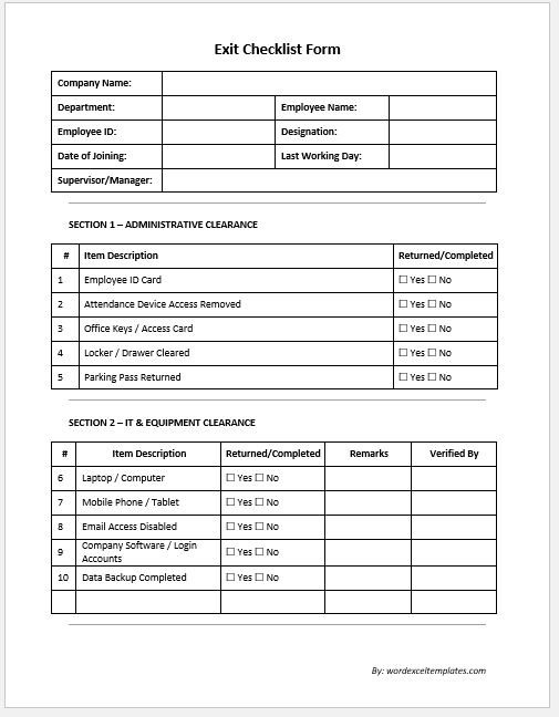- Employee Exit Forms