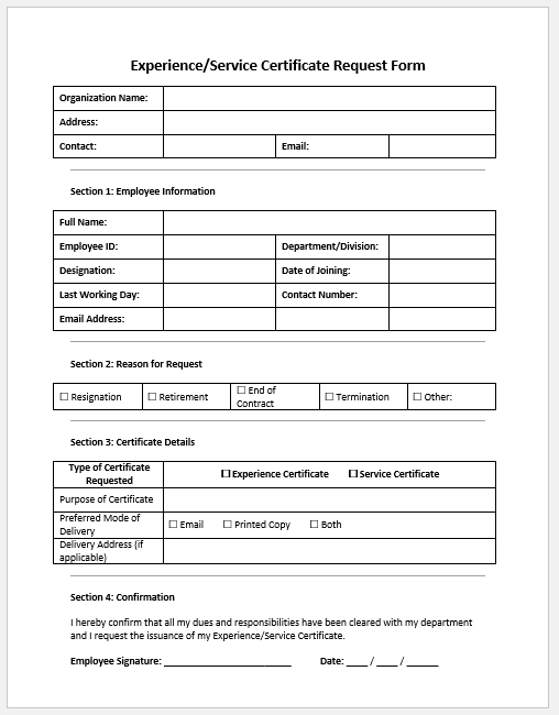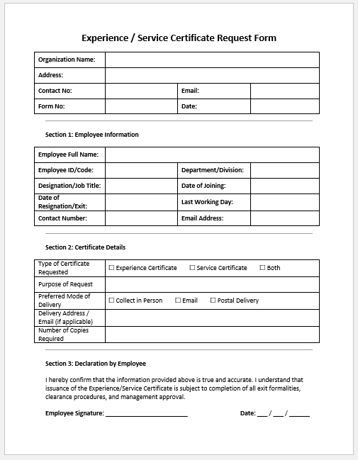 - Experience/Service Certificate Request Form -facilitates the issuance of experience letters.