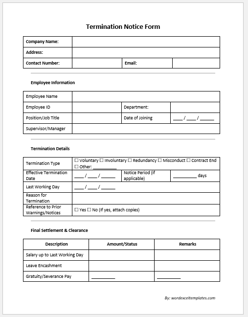 - Forms for Termination of Employment