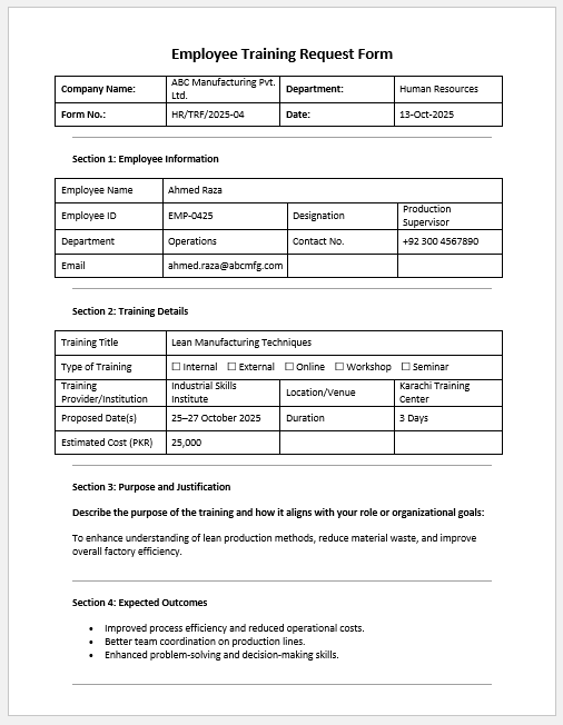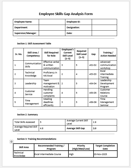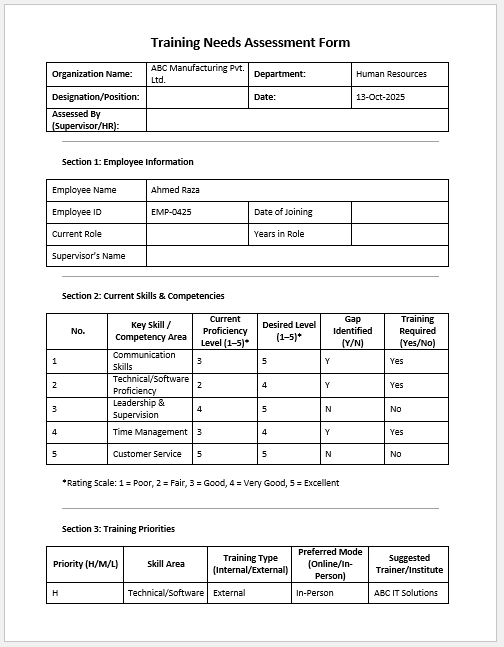 Employee training and development are vital to building a skilled, motivated, and future-ready workforce. To manage this process efficiently, organziations rely on documentation that helps track training needs, monitroing progress, evaluate effectiveness, and record outcomes. The following forms are widely used to make sure initiatives are well-planned, properly executed, and accurately assessed.