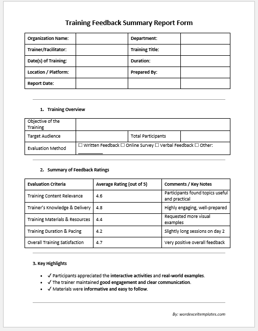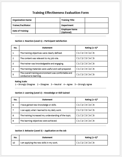 - Evaluate both trainer performance and employee learning outcomes.
