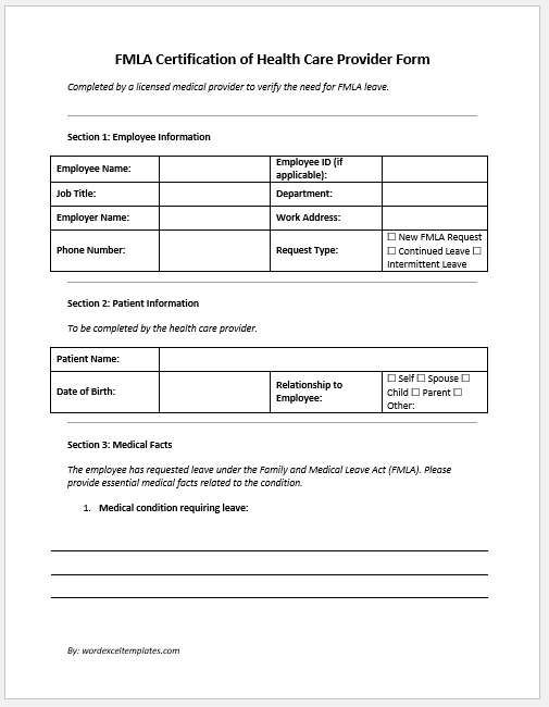 - FMLA Certification of Health Care Provider Form