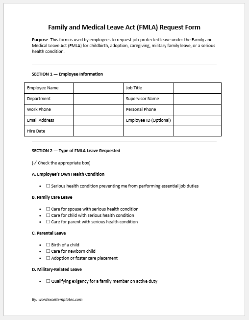 - Family and Medical Leave Act (FMLA) Request Form