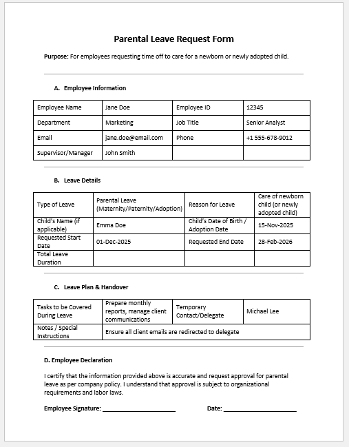 - Maternity Leave Application Form